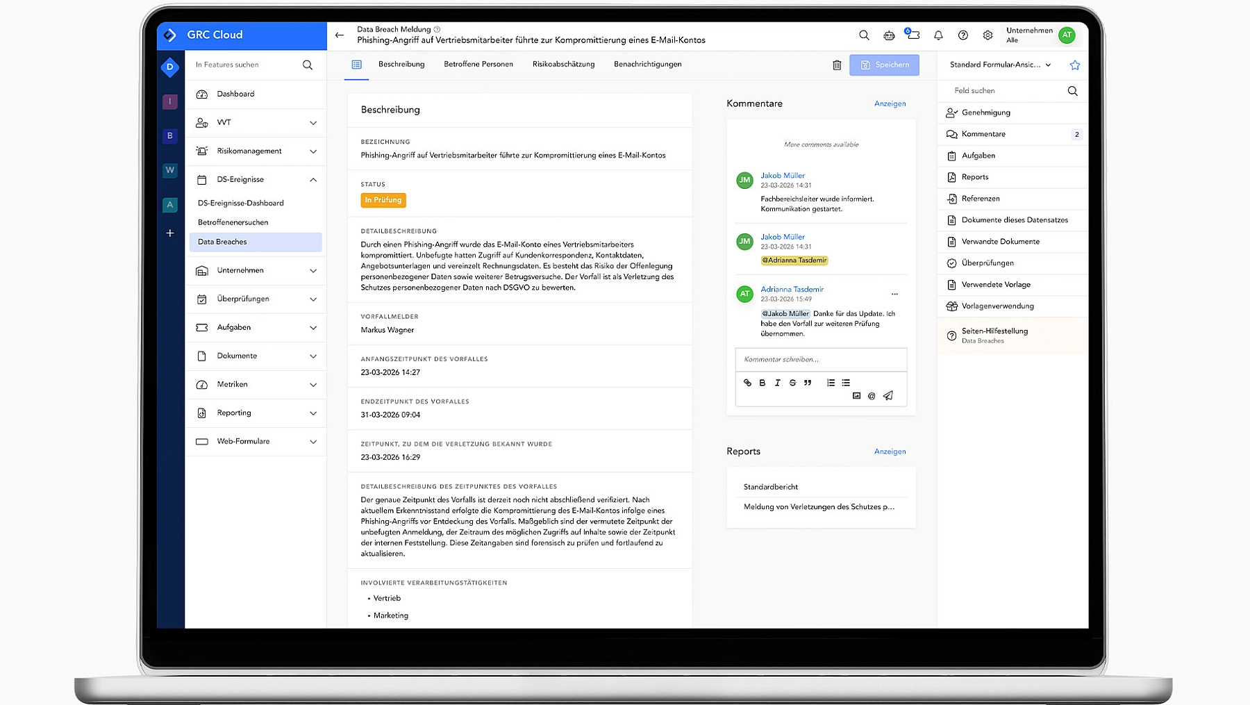Datenschutzprozesse konsistent und strukturiert umsetzen sowie nachweisbar dokumentieren: Die GRC Cloud unterstützt Sie bei der Erfüllung der DSGVO-Anforderungen. Teamübergreifend, effizient und revisionssicher.