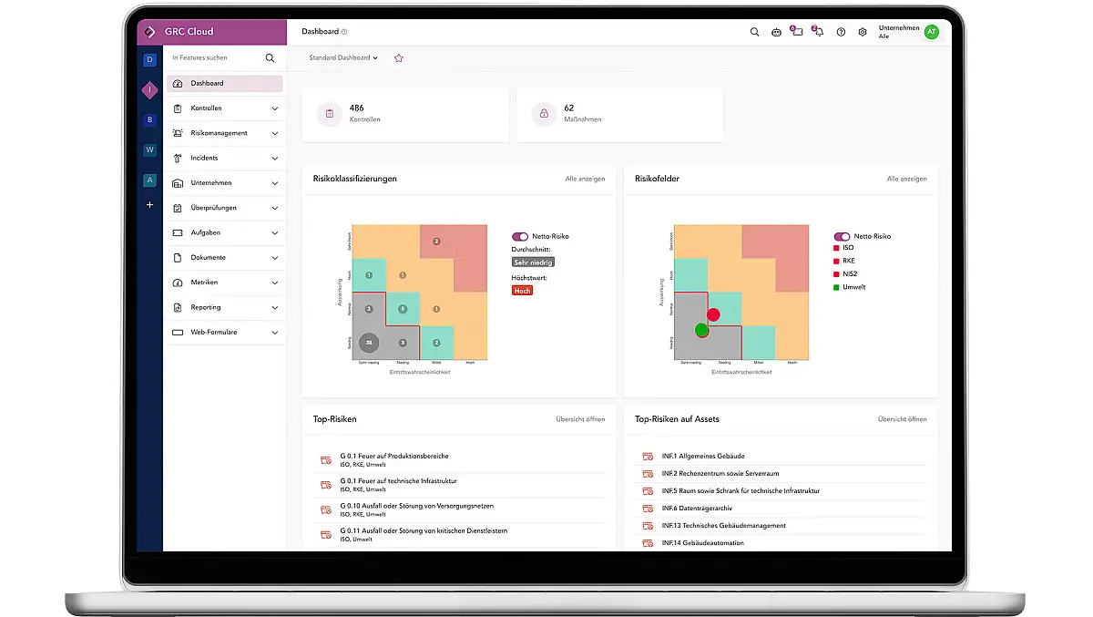 Risiken gezielt minimieren: Die GRC Cloud beinhaltet alles, um ein vollständiges ISMS aufzubauen und zu betreiben – konform mit den Anforderungen von ISO 27001, NIS2, TISAX® und zahlreichen anderen.